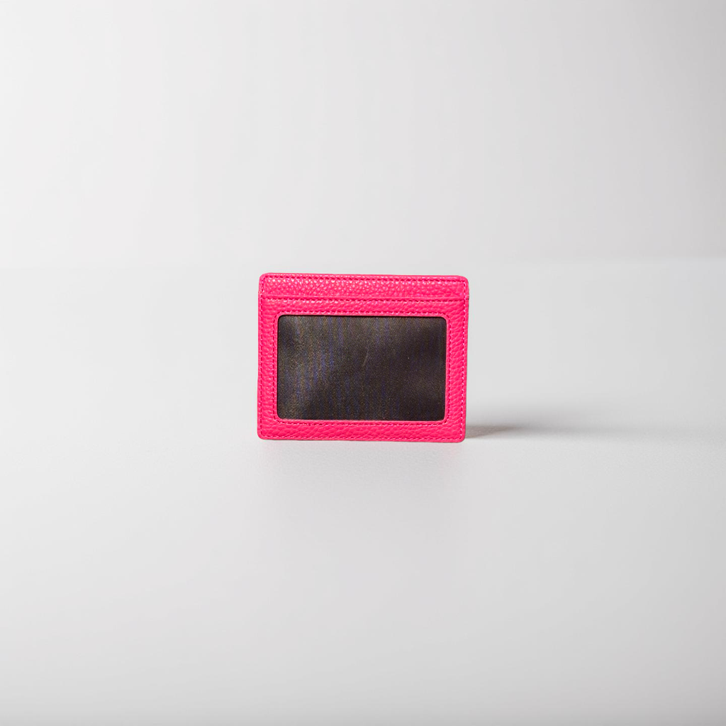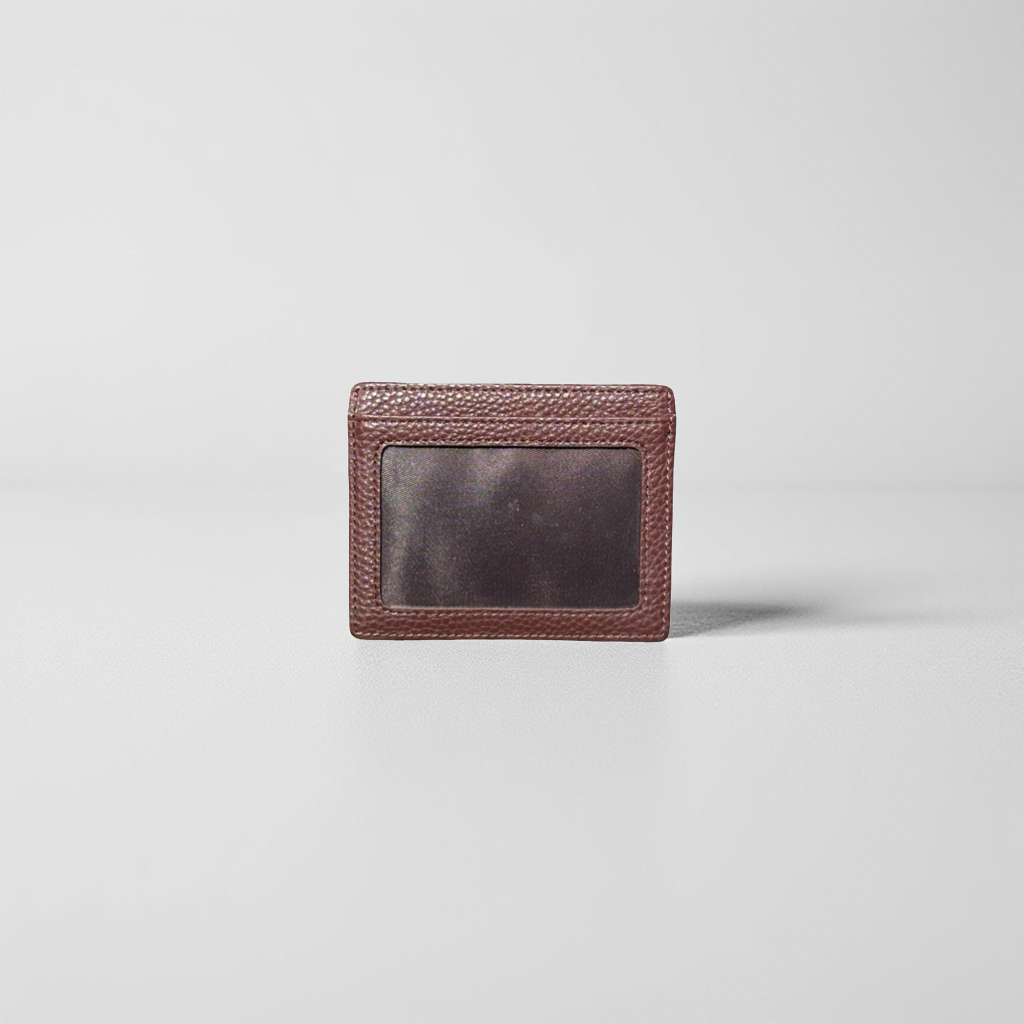Designed with four slots that hold up to 8 cards, it features a clear ID window on the back for quick access. Crafted from premium Italian Pebble Grain leather, it keeps a slim, durable profile for everyday carry.